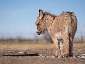 A young miniature donkey wondering where Mom wandered off to.