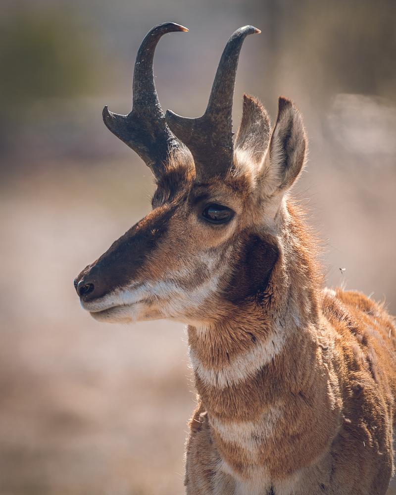 A rough looking pronghorn mid rut.