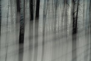 A motion blur of some burned out trees in Yellowstone.