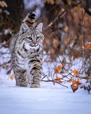 A bobcat kitting coming to the sound of it's mom's calling.